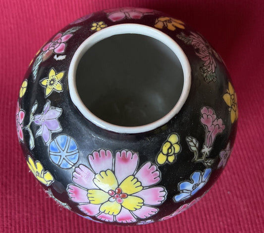 Vasetto Cinese Stile 5 Colori Su Base Nera