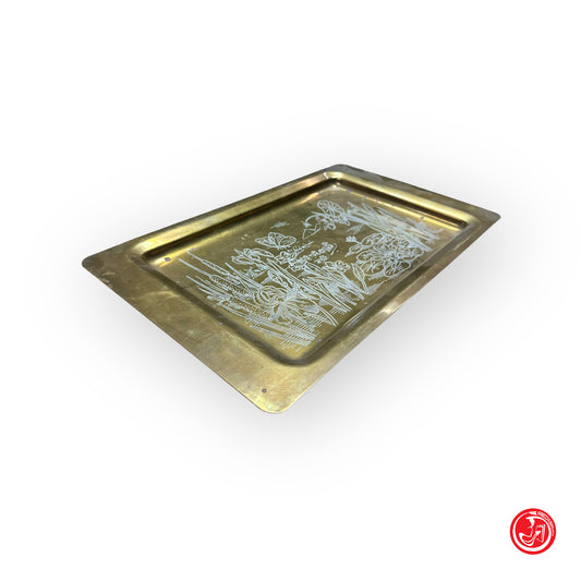 Vassoio in metallo con decorazioni incise