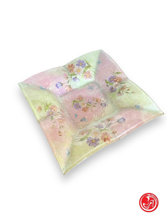 Vassoio in vetro con decorazioni decoupage